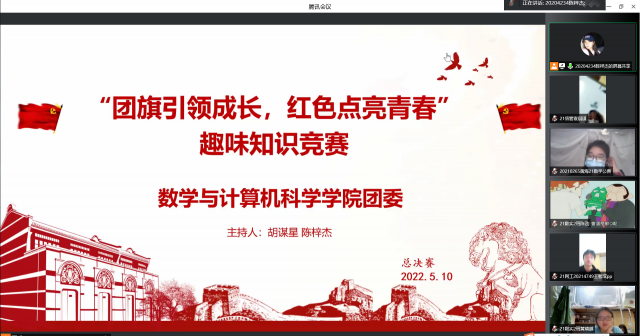 为庆祝中国共产主义青年团成立100周年,进一步继承和弘扬五四精神,增强团的自信心和凝聚力,巩固和深化党史学习教育成果,数计学院于5月10日开展线上“团旗引领成长,红色点亮青春”趣味知识竞赛。