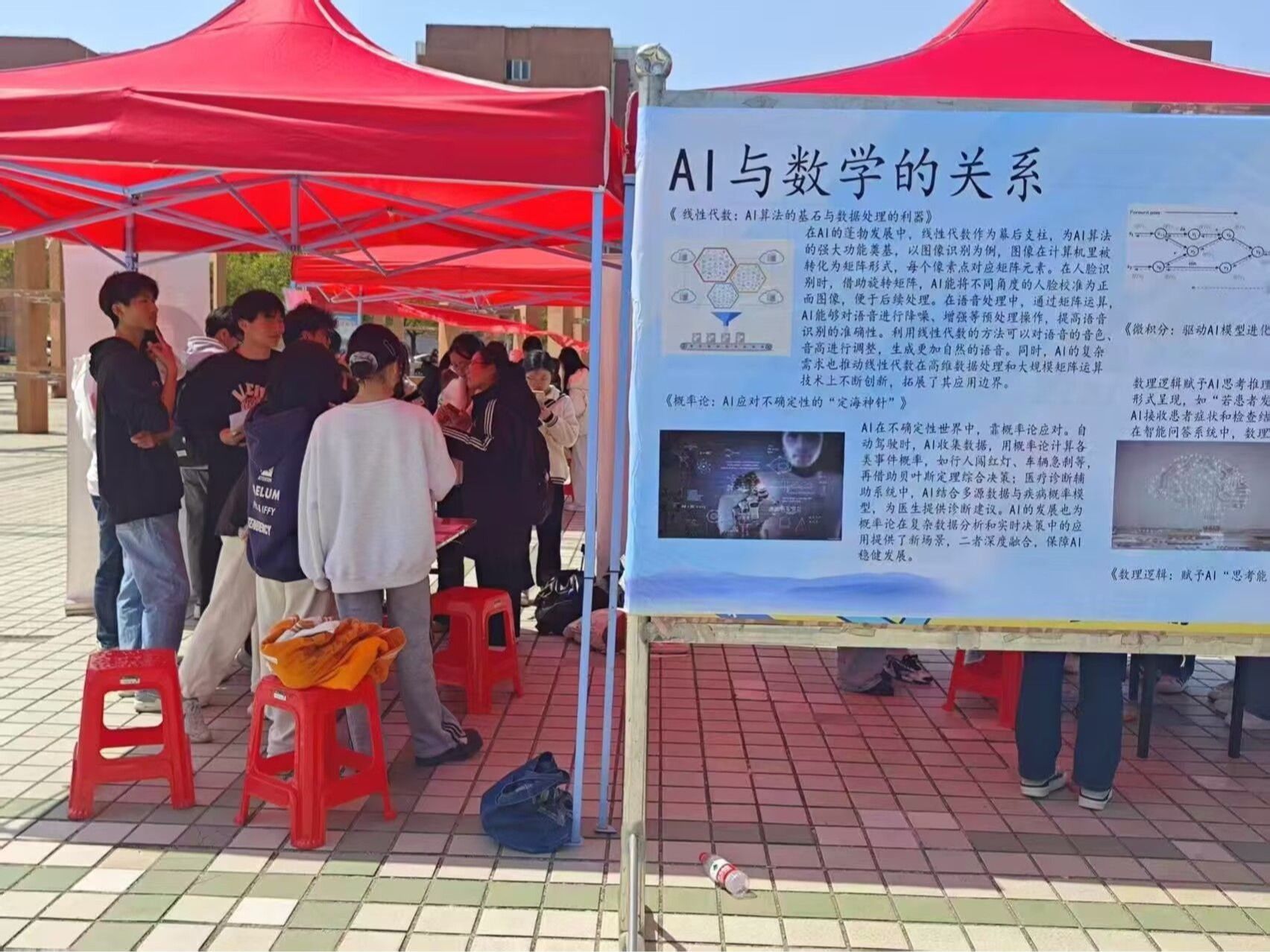 活动现场精心打造了四大特色区域:在知识展示区,图文并茂的展板系统呈现了数学与人工智能深度融合的成果;演示体验区内,志愿者们凭借对各类AI软件的熟练掌握,专业展示如何运用前沿技术攻克复杂数学难题,激发了在场同学的参与热情;互动问答区氛围活跃,同学们踊跃提问,共同探讨AI与数学领域的前沿话题;创意工作坊备受青睐,参与者们亲身体验实践过程,充分感受AI强大算力与数学独特魅力。