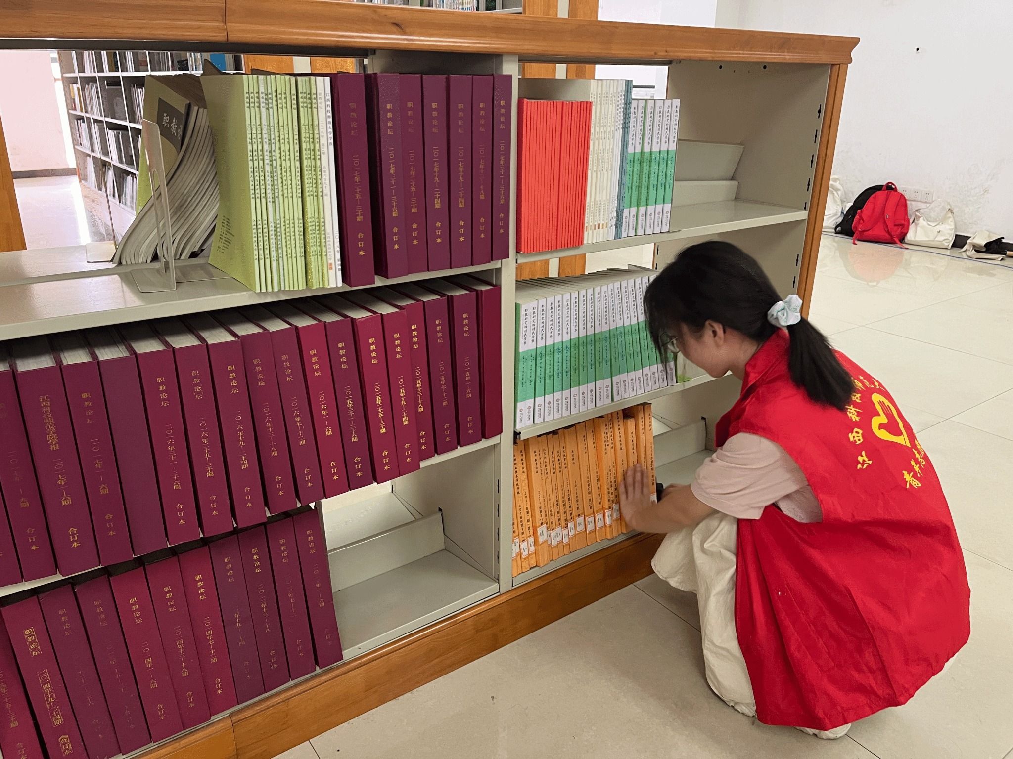 在图书馆工作人员的专业指导下,志愿者们分组行动,有条不紊地对各个书架进行排查整理。有的负责将散落的书籍归位,有的仔细核对书籍编号,确保每一本书都能准确无误地回到属于自己的“小格子”。对于一些年代久远、书皮破损的书籍,志愿者们更是化身“书籍修复师”,细致地进行修补加固,让承载知识的书页重新焕发生机。在大家的共同努力下,原本堆放杂乱的书籍变得整齐有序,书架也变得焕然一新。