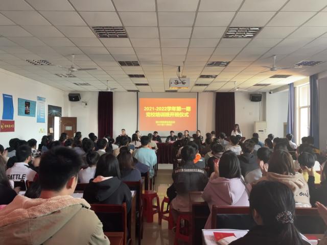 为深入学习贯彻习近平总书记在党史学习教育动员大会和庆祝建党100周年大会上的重要讲话精神,进一步做好学生党员发展工作,端正学生的入党动机,提高学生的党性修养,11月9日下午,数计学院在红角洲校区2305多媒体教室举行2021-2022学年第一期党校培训班开班仪式。学院党委书记熊鹰,院党委委员、教学办主任易云辉,学生党总支副书记、学生第一党支部书记朱丽,团委书记、学生第二党支部书记刘兴,学工办主任、学生第一党支部宣传委员兼纪检委员罗菁,团委副书记、学生第二党支部宣传委员兼纪检委员欧阳式建,校学生工作处陈熙明老师以及130余名参训学员参加了开班仪式。