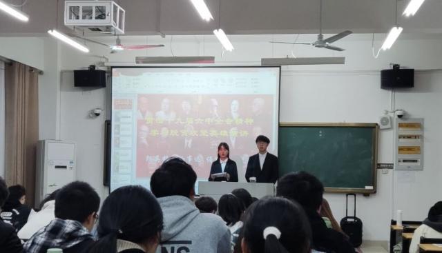 为激励学生大力宣传脱贫攻坚英模的感人事迹,感恩扶贫英烈的无私奉献,学习脱贫攻坚模范人物,敢为人先、艰苦奋斗的精神,数计学院于11月22日晚上在文科楼W1102开展2021年“献礼建党100周年学党史系列•贯彻党的十九届六中全会精神·学习脱贫攻坚英雄”主题演讲比赛——朗英雄人物事迹,诵脱贫攻坚精神。学院学工办副主任郑睿颖、团委副书记欧阳式建、专职辅导员彭智以及学生会各部门负责人担任本次比赛评委。