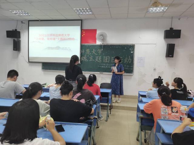 “立德”是我国古代所谓“三不朽”之一,“立德树人”也是我国历代教育共同遵循的理念。本次活动以演讲、朗诵、观看视频及心得分享等多种方式结合开展,带领同学们体会教育内涵,学会尊师重教。在视频播放后,同学们展开激烈讨论并踊跃发言,其中来自21公费计科班的杨武同学说到:“以言传,以身教,以敬畏立师德,以行动铸师魂,将是我一生追求的目标。”