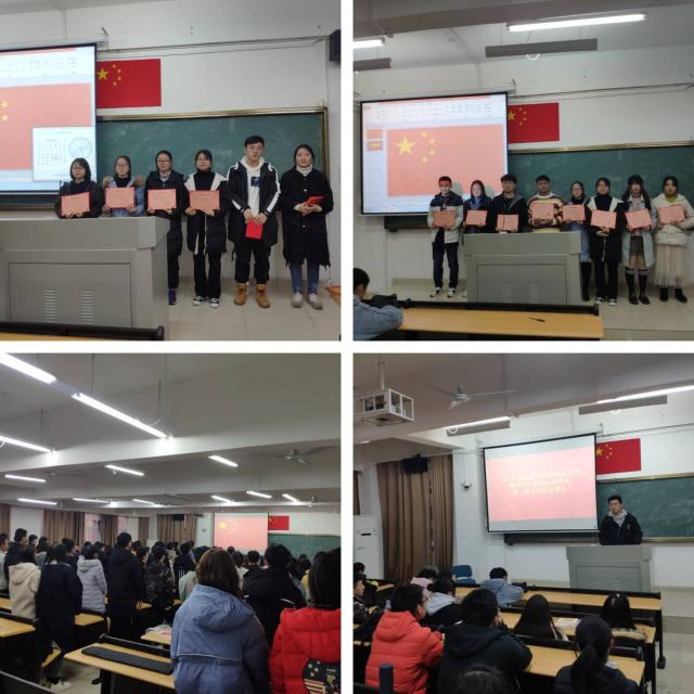 伴着神圣庄严的国歌声,党课结业典礼正式开始。典礼伊始,朱丽对本次通过党校培训班考核的学员们表示祝贺,同时对本期党课培训班结业做出总结。她指出,此次培训班的课程安排合理,在六节党课培训和两次研讨会议下,培训达到了预期的学习效果。希望学员们继续认真学习和宣传党的十九届四中全会精神,坚定理想信念,努力向党员同志看齐,严格要求自己,锻炼自我,以实际行动争取早日加入中国共产党。随后朱丽为在党课培训中表现优异的六名优秀学员、六名强国之星、八名突出贡献学员颁发荣誉证书。典礼最后,优秀学员代表彭莎莎分享了她对本期党课培训的学习心得。