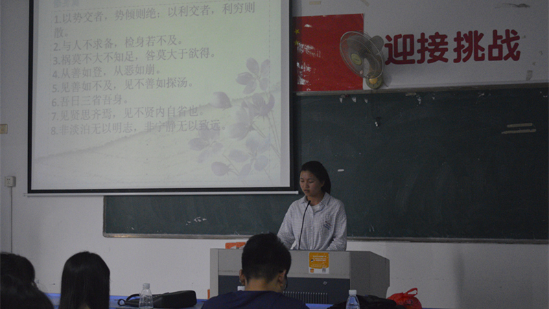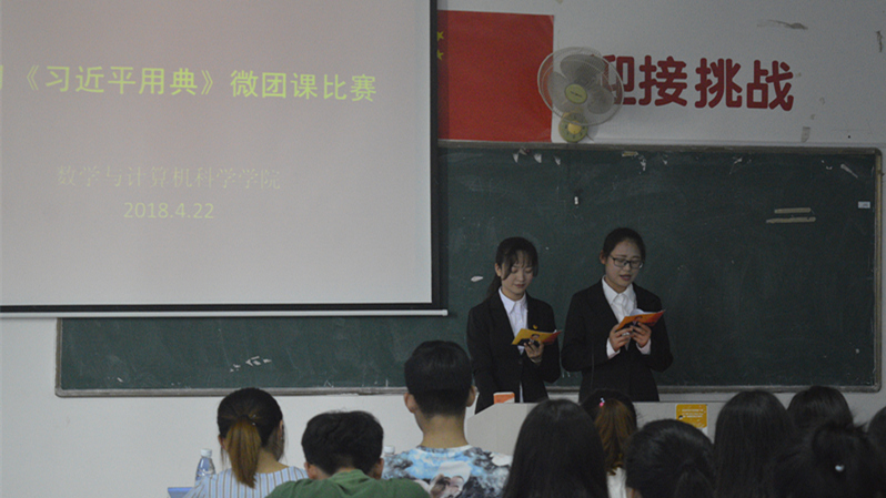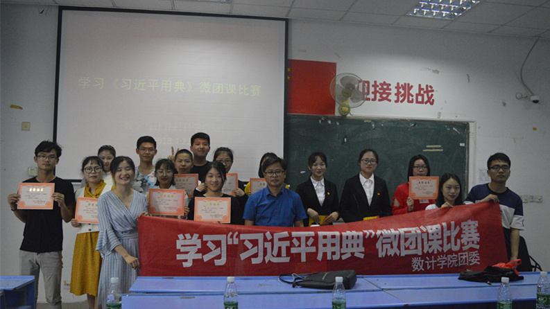 为深入贯彻落实习近平新时代中国特色社会主义思想和党的十九大精神,推动《习近平用典》进入校园,营造弘扬中华优秀传统文化的浓厚氛围,深化落实“一学一做”教育实践活动。数计学院于4月22日下午两点在红角洲校区3306教室举办“学习《习近平用典》微团课”大赛。学工办主任范严、学生会主席董洪据、学生党支部副书记涂珍、团总支副书记邱杨、外联部部长尹莹珠、新媒体工作部副部长孟令坤及学生代表出席本次比赛。