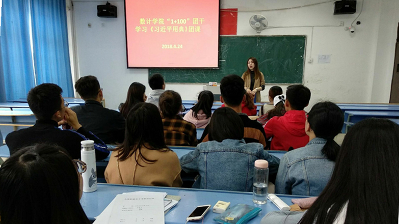 读传统经典,与圣人同行。4月24日下午一点,数计学院团委在红角洲校区开展“1+100团干”学习《习近平用典》主题团课活动,深入学习习近平总书记系列重要讲话精神,大力弘扬中华优秀传统文化,活动由团委老师罗菁主持。