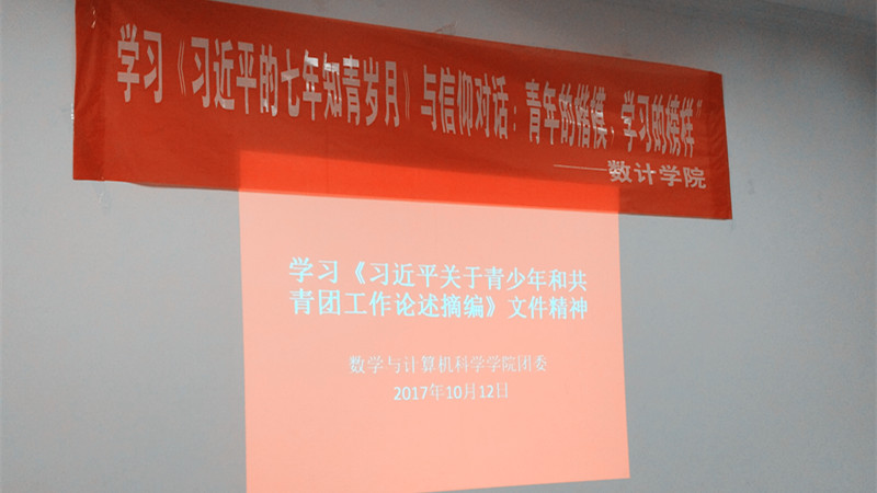 近日,经党中央批准,由中央文献研究室编辑的《习近平关于青年和共青团工作论述摘编》正式出版发行,数计学院团委于10月12日下午5点在红角洲校区C241会议室组织广大团员青年深入学习宣传贯彻《论述摘编》,数计学院团委负责老师罗菁、学生团总支副书记邱杨以及16级、17级共青团员代表参加会议。