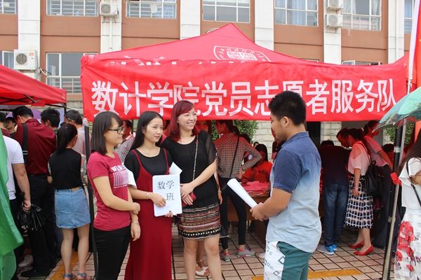 数计学院党员团队为助力学院迎新工作的开展,做好党员的先锋模范作用,9月10日,由学院党总支副书记朱丽带领的一支强大党员服务团队,来到学院新生入学报到点旁,帮助新生解答入学所遇见的问题,展现学院党员们的优秀品质。