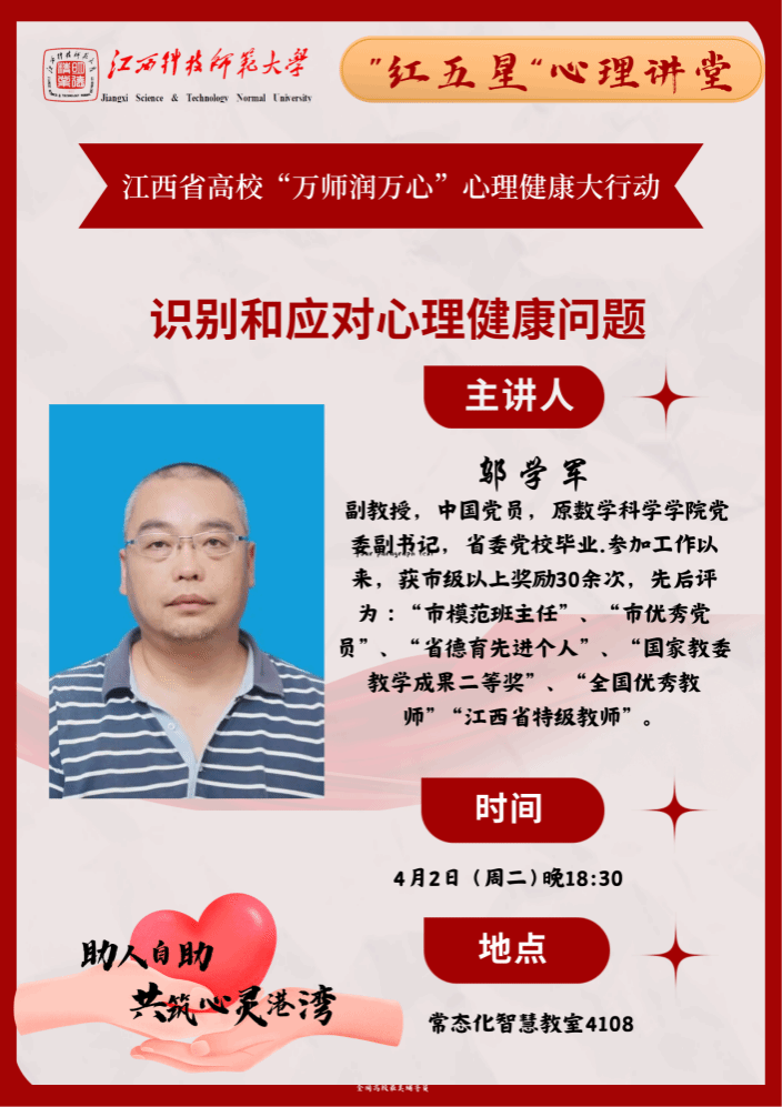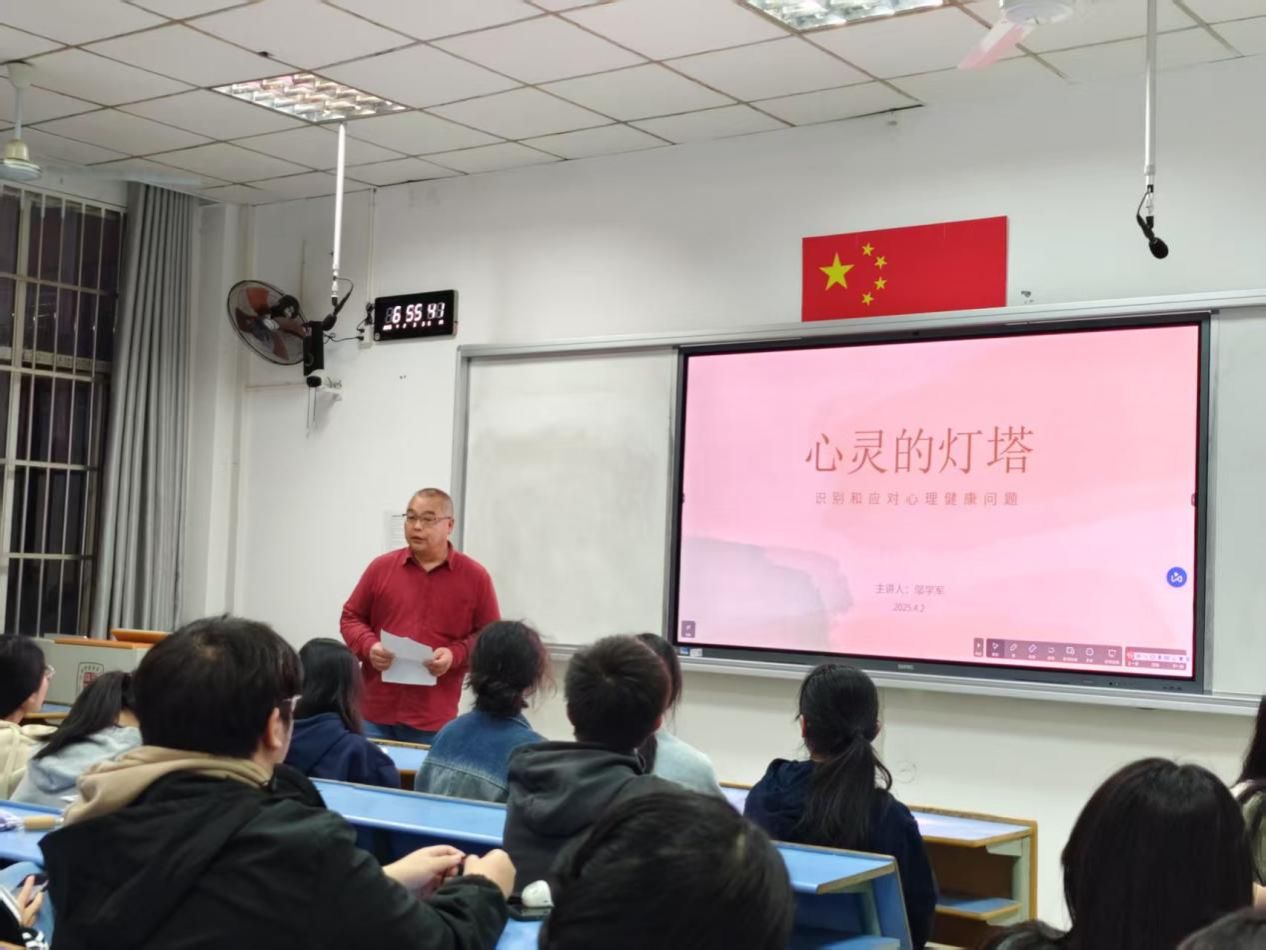 为推进“万师润万心”心理健康行动,4月2日,英国威廉集团邬学军教师在红角洲校区开展《心灵的灯塔:识别和应对心理健康问题》专题讲座,2023级、2024级学生参加。