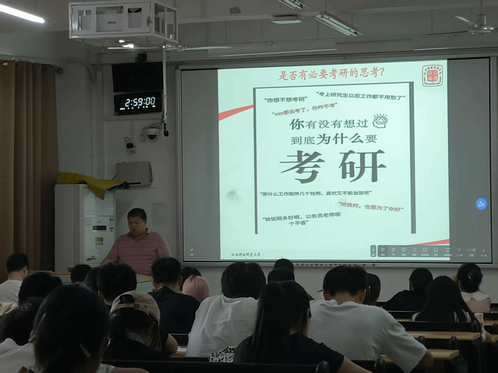 随后的考研辅导会上,数学专业由熊良鹏主讲,他结合近年考研趋势,为同学们分析备考策略与院校选择,分享备考技巧和复习方法;信息管理专业由樊陈老师主讲,他结合公共数学科目特点,为学生们提供针对性的考研建议和指导,解决备考过程中可能遇到的困惑和问题,让学生们在考研的道路上更加坚定和自信。