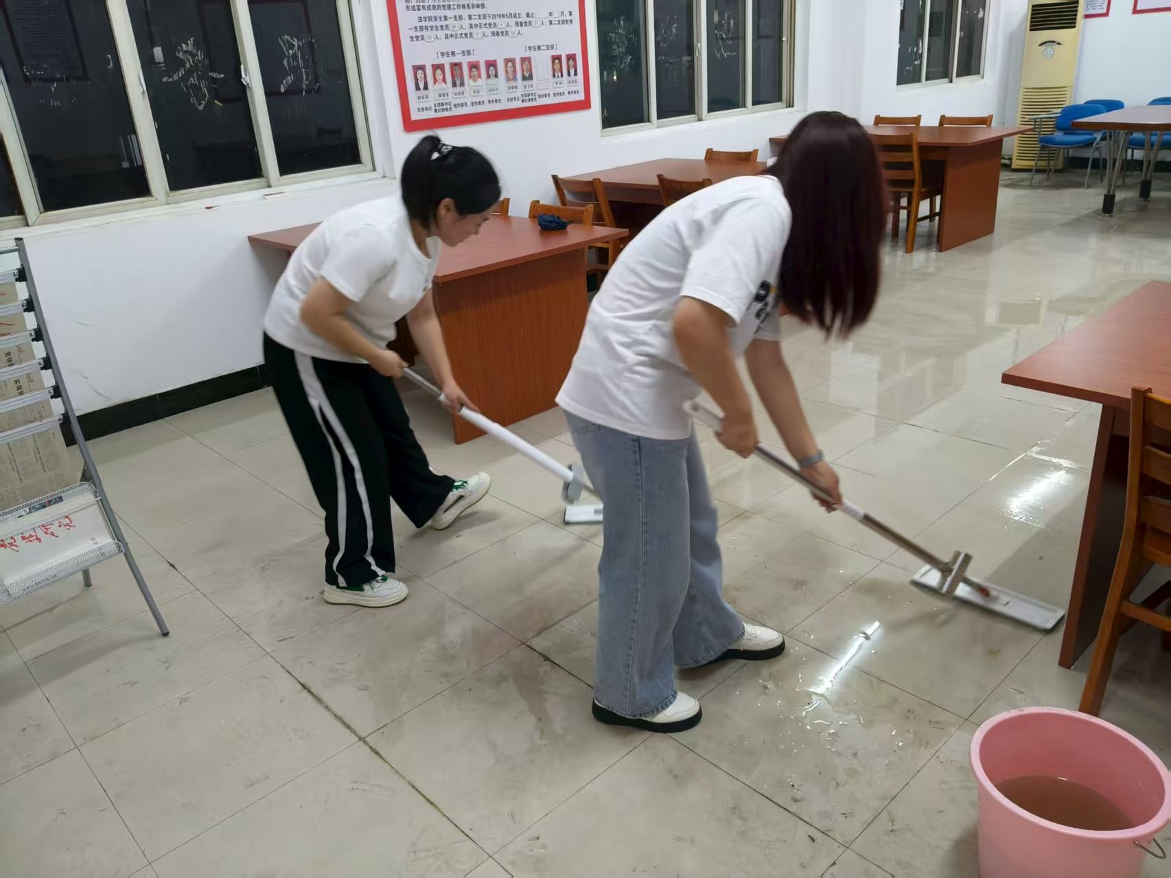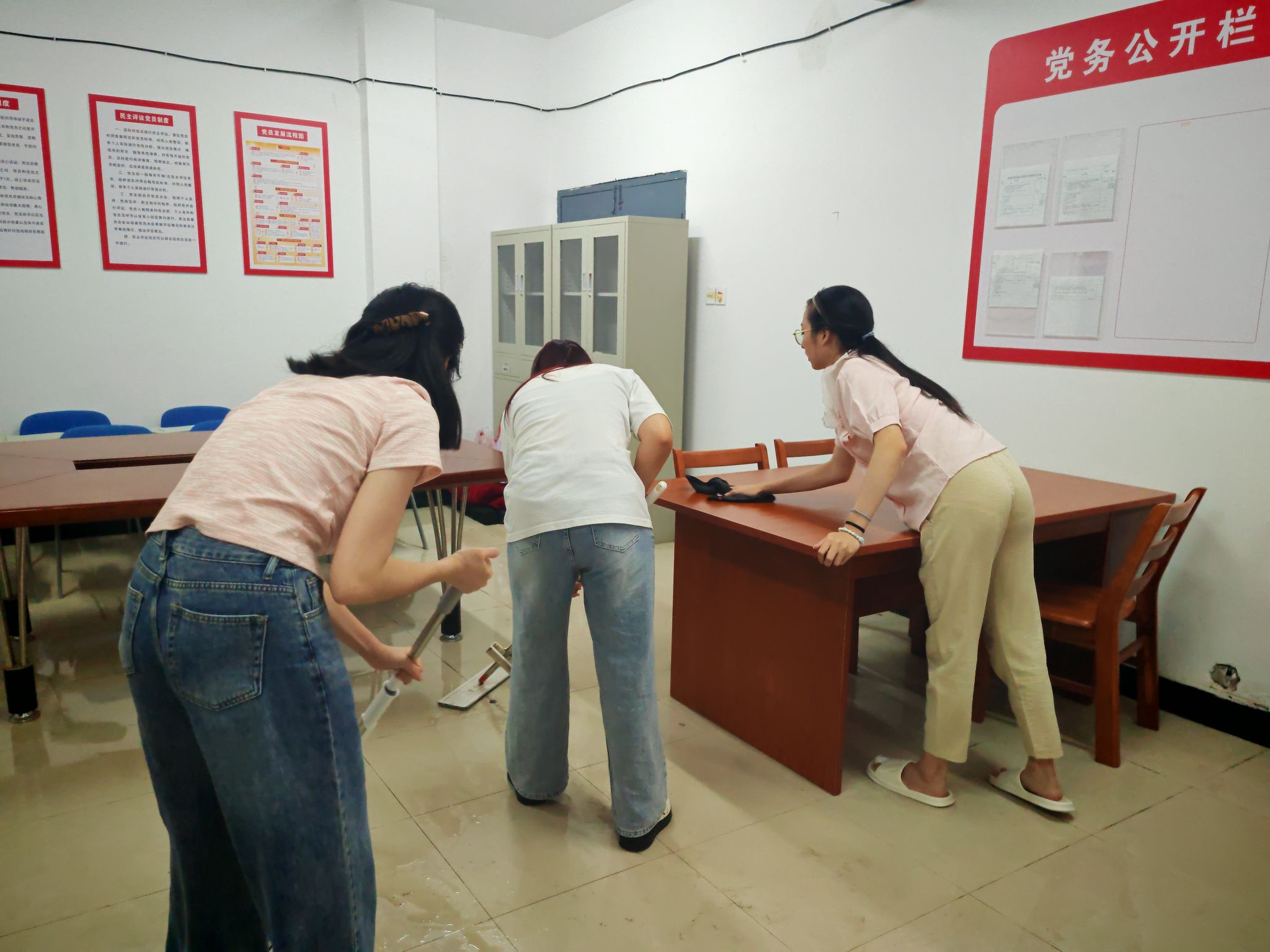 9月11日,党支部组织学生党员和青年志愿者对学生公寓6栋党员活动室及学校“红五星”一站式服务中心名师工作室进行了全面清扫与整理。大家分工协作、积极配合,对桌椅、书籍、宣传栏等进行了细致清洁和归类整理,为后续迎新接待营造了干净、温馨的环境。