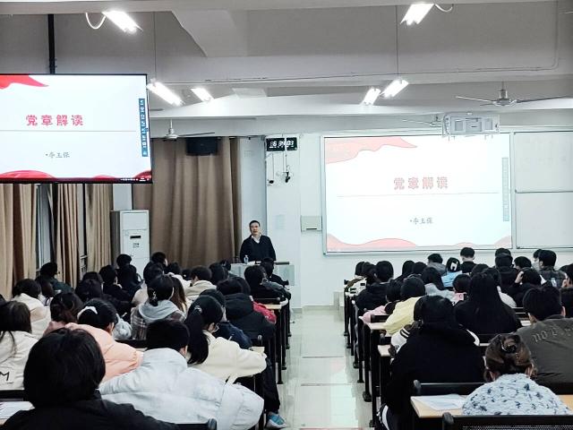 为全面学习贯彻习近平新时代中国特色社会主义思想和党的二十大精神,加强入党积极分子对党章相关内容的了解与认识,2023年12月5日晚上,大数据科学学院邀请校党委委员、副校长李玉保,在红角洲校区W1109教室为我院127名学员讲授党课。