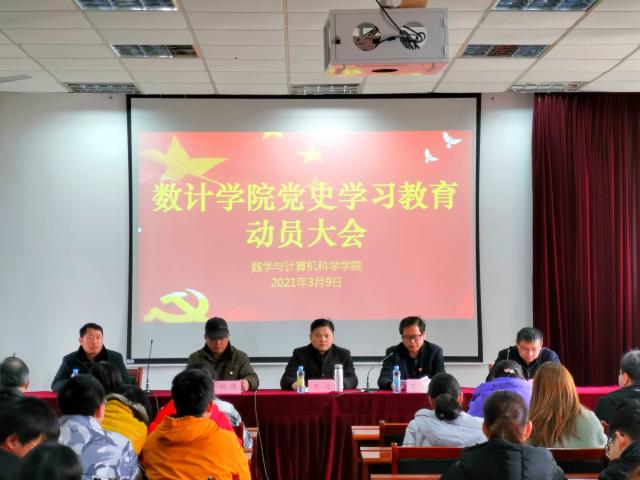 3月9日下午,数计学院在红角洲校区2305多媒体教室召开党史学习教育动员大会,深入学习习近平总书记在党史学习教育动员大会上的重要讲话精神,认真贯彻学校党委关于党史学习教育的决策部署。会议由学院党委副书记范严主持,全体党委班子成员和师生党员参加会议。