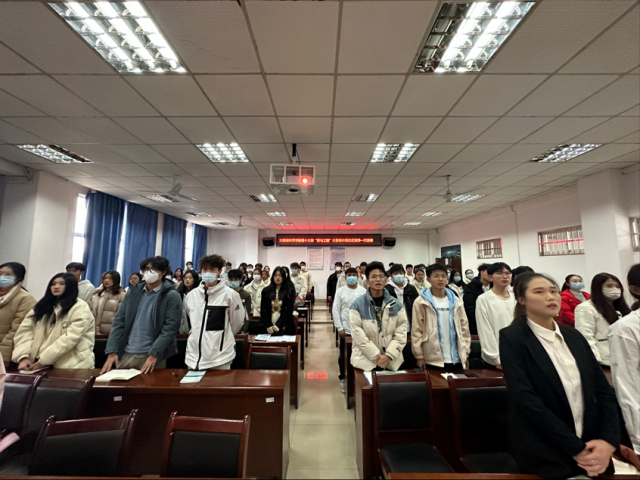 在激昂的国歌中,仪式拉开帷幕。熊鹰为开班仪式致辞,他希望学员们端正态度,踏实学习,并就今后的培训班学习内容,向大骨班学员们提出了三点要求:一要深化理论学习,坚定理想信念;二要强化实践锻炼,增强自身本领;三要紧密联系同学,提高服务意识。紧接着,彭智就培训班工作安排和学习纪律提出要求,要求各班级、学生组织高度重视本次培训工作,坚持民主公平原则,严格执行选拔工作制度;参加培训的学员严格遵守纪律,按时参加培训班的教学活动和班集体组织的活动,做到不迟到、不旷课;要随时做好听课笔记、读书笔记、完成学习体会,并强调课堂表现、参加活动情况等作为考核成绩的重要依据。