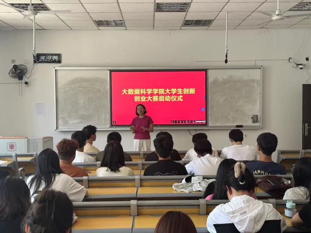 为了培养“大众创业,万众创新”的生力军,营造创新创业教育氛围,激发我院学生的创造力,2024年5月14日,大数据科学学院于红角洲校区4106教室召开大学生创新创业大赛启动仪式,学工办副主任郑睿颖以及各班级学生代表参加。