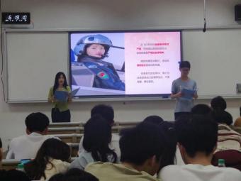 宣讲开始,宣讲团成员紧扣“学习青春榜样,贡献青春力量”的宣讲主题,为大家介绍了甘于为国家、为人民自我奉献的优秀青年榜样们,他们或是用自己的青春与热血守护祖国的碧海蓝天,用实际行动表达爱国之心,或是用自己的智慧与汗水书写青春华章,在科研领域做出卓越贡献。在这令人动容的榜样故事中,同学们切切实实地感受到了青春的力量与榜样的精神,发自内心地向榜样学习。最后,宣讲团成员号召呼吁大家在未来的学习生活中以青年榜样的精神激励自己,以青年榜样的标准严格要求自己,学习榜样,争做榜样!