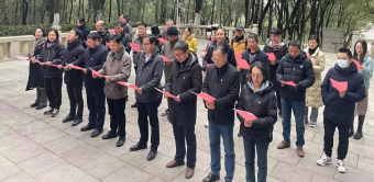 现场熊鹰、范严同志进行献花仪式,徐玲同志引领全体党员教师在鲜红的党旗下,右手握拳,重温入党誓词,面向党旗庄严宣誓,诵读方志敏烈士在狱中写下的遗作《可爱的中国》节选,响亮的宣誓声、诵读声铿锵有力、慷慨激昂,久久回荡在陵园上空。