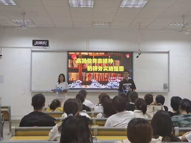 宣讲团成员们紧紧围绕《弘扬教育家精神,树立师德师风》主题开展宣讲,带领同学们重温习近平总书记给全国优秀教师的致信。通过学习张桂梅、于漪两位教师楷模光荣事迹,引导师范生在今后从教路上要以教育家们为榜样,积极承担立德树人的重任,牢记为党育人,为国育才的初心使命,自立自强,踔厉奋发,争做时代的奋进者,开拓者,奉献者。