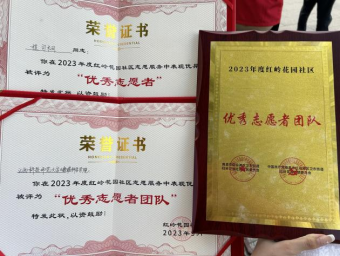 精彩的节目结束后,红岭花园社区对2023年涌现出的一大批优秀志愿者进行了表彰,他们有党员、楼栋长、也有学生……他们时常挺身而出,积极参与到小区值守、信息排查政策宣传、困难帮扶等工作中。其中我院志愿者团队荣获“优秀志愿者团队”称号,学院程司桐同学获得“优秀志愿者”称号。
