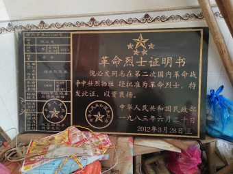 每一位烈士名字的背后,都有一段感人的故事。在倪家村这片红色土地上,蕴藏着许许多多的感人革命故事,在村干部倪红的带领下,实践队探访革命先烈后代,挖掘感人革命故事。“我家公倪必发在我丈夫出生四十天就加入了革命队伍,在第二次国内革命期间作战牺牲,那时他才26岁。”85岁倪家奶奶说道。随即她从家里压底的箱子里颤颤巍巍地拿出了革命烈士证明书,泛黄证书上图案早已模糊不清,但上面的字迹却清晰醒目。倪必发烈士的故事让在场的实践队成员从心底涌起一股敬佩与感慨,久久不能平复。