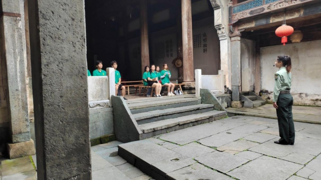 瑶里作为《闪闪的红星》拍摄地,不仅有优美的自然风光,更有厚重的红色文化底蕴。7月9日上午,队员们沿着新四军的改编路线,在讲解员的带领下,一步一个脚印,追忆革命先辈的英雄事迹。队员们在这片土地上深深体会到了军民鱼水情,了解了革命时期以瑶里干娘戴桂枝和通讯员汪振丰等为典型的英雄人物。参观陈毅旧居、程氏祠堂和新四军瑶里改编纪念馆,队员们深感革命困苦,改编之艰辛;瞻仰瑶里改编纪念碑,听党课、绣党旗,队员们重温红色历史,缅怀革命烈士,感悟瑶里改编精神。