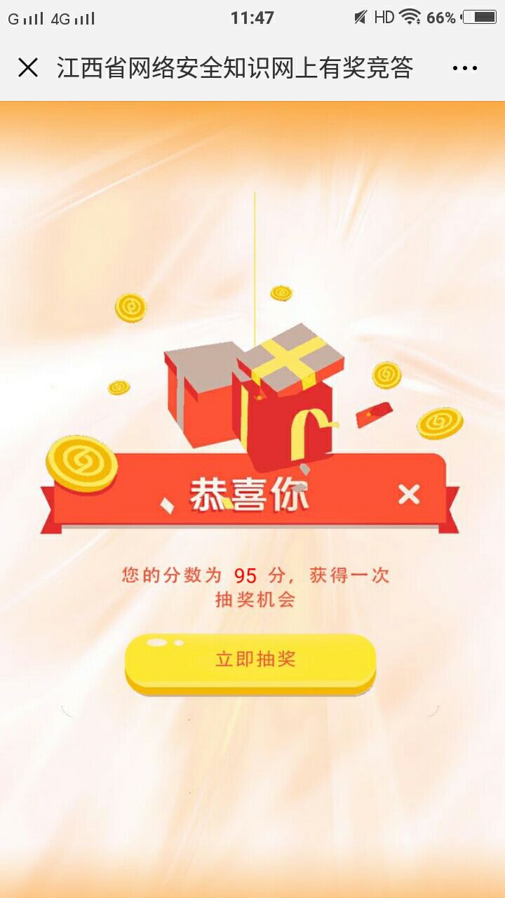 为贯彻落实党的十九大精神和习近平同志关于网络安全的重要讲话,强化“没有网络安全就没有国家安全”的责任意识,深入贯彻省委、省政府关于网络安全的决策部署,数计学院于2018年9月26日至10月14日组织全体师生参加“江西省网络安全知识网上有奖竞赛”活动。