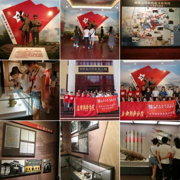 “三下乡”第三站全体成员抵达秋收起义纪念馆进行红色教育学习。修水秋收起义纪念馆,是中国工农红军第一面军旗升起的地方。服务队通过观看实物陈列、历史资料、档案照片,聆听秋收起义前后革命先辈的英勇事迹,了解了秋收起义的历史背景和艰难历程,拉近了与秋收起义的时空距离,深刻认识到我党第一支工农武装的诞生,打出工农革命军第一面军旗重要意义。老一辈无产阶级革命家惊天动地的壮举,耳边回响着“红色领带系在颈,只顾死来不顾生”豪迈誓言,重新看到了“投身革命即为家”的坚定信念,为崇高理想不畏牺牲、坚忍不拔的奋斗精神,无不感动了在场的每一位队员,大家深深体会到幸福生活来之不易。