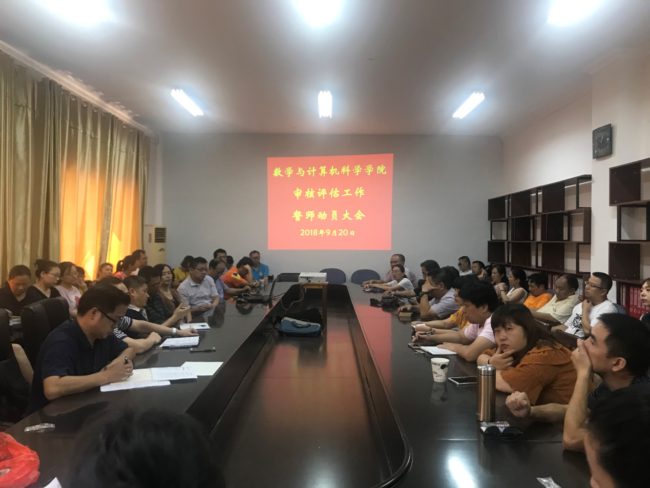 为迎接我校本科教学审核评估工作,进一步将全院师生的思想统一到评估工作的部署中,明确责任分工,数计学院于9月20日下午一点在红角洲校区C459会议室举行誓师大会,对预评估专家进校期间的相关工作进行再动员、再部署。学院党委书记程春清,院长舒斯会,副院长郝谦、万佩真,学院全体教师及学生代表参加了本次誓师动员大会,党委书记程春清主持了此次会议。
