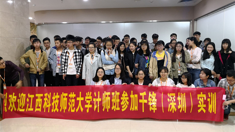 为让在校大学生更加直观了解不同的企业文化,感知最前沿的计算机专业技术,数计学院在培养人才模式上,积极探索并努力为大学生创造良好的实训实习平台。本学期第七周15级计算机科学技术师范二班(以下简称15计师二班)专业采用课堂学习加课外实训的教学方案进行学习,在朱丽老师和周艳杰老师的带领下,全体同学来到深圳千锋教育开展为期一周的实训课程。
