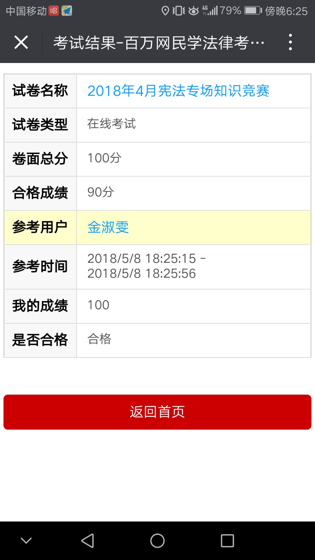 为了响应党的号召,增强同学们的法制观念,提高同学们的安全意识,数计学院于2018年5月8日及9日开展了法制在线答题活动,每位同学都积极参与其中,并取得了好的成绩。