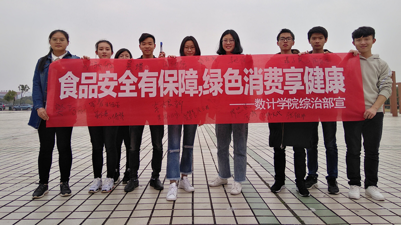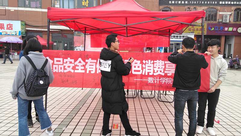 为普及食品安全知识,大力提高广大师生的食品安全意识,倡导绿色消费的社会风尚,数计学院于3月23日在红角洲校区开展了一次以“食品安全有保障,绿色消费享健康”为主题的摆台活动,综合治理部全体成员参加了本次活动。