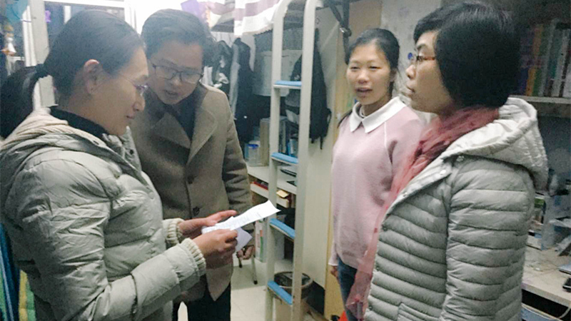 贫困学生们对学院此举表达了真挚的感谢,也感谢老师们在寒风中能够亲自来访宿舍,他们都向老师承诺一定认真学习,不负众望。