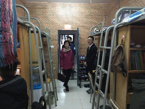 走访过程中,老师们逐一检查每间寝室,重点关注了各个宿舍的用电情况,反复向同学们强调应提高安全意识,务必严格遵守学校规定,做到不私拉电线、不使用高功率电器,杜绝一切安全隐患,不时叮嘱同学们不要图一时方便将插线板放置床上,构成安全隐患,要对自己、室友的人身安全负责。期间,老师们亲切地询问同学们在学习、生活等方面的情况,解答同学们的问题;并提醒同学们注意天气变化情况。寝室里欢声笑语,洋溢着师生间的浓浓情谊,老师们的言行也充分体现了学院对学生的关怀。
