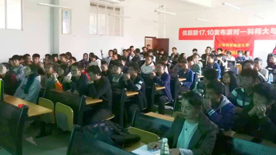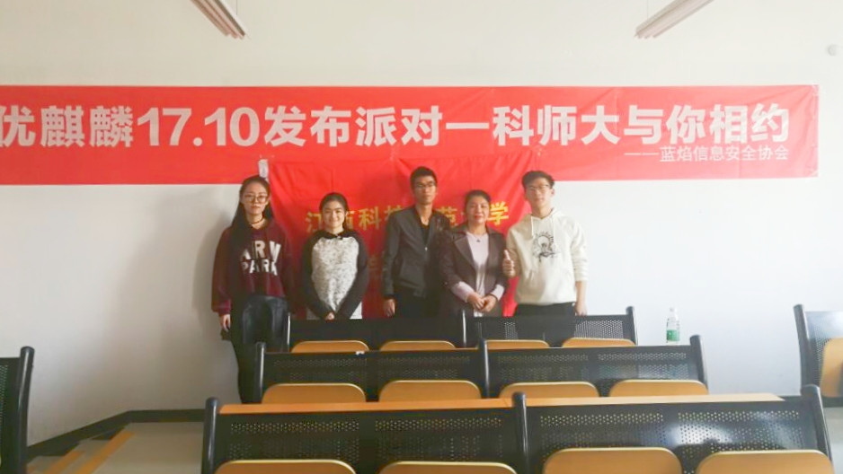 为激发大学生对科技的兴趣,开阔大学生的视野,同时为Linux开源操作系统应用创造良好的社区基础,由优麒麟社区主办,威廉williamhill数计学院承办的优麒麟17.10发布派对于10月31日下午两点在我校红角洲校区Y109教室召开,优麒麟核心开发人员,国防科技大学李剑锋老师,数计蓝焰信息安全协会指导老师马丽出席本次发布会,会议由数计蓝焰信息安全协会会长宋鑫伟主持,来自数计学院的百余位学生参会。