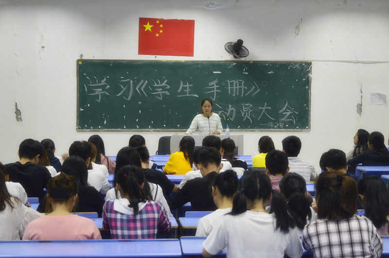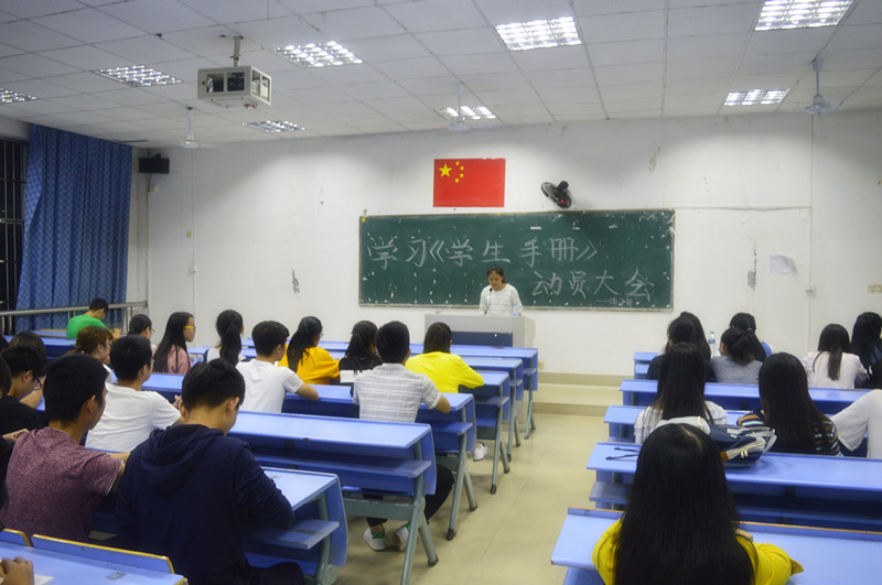 为促使同学们认真学习新版《学生手册》,加深对校纪校规的了解。强化自身素质,数计学院学习部于9月29日晚七点在3101教室开展了对新版《学生手册》学习的动员活动。