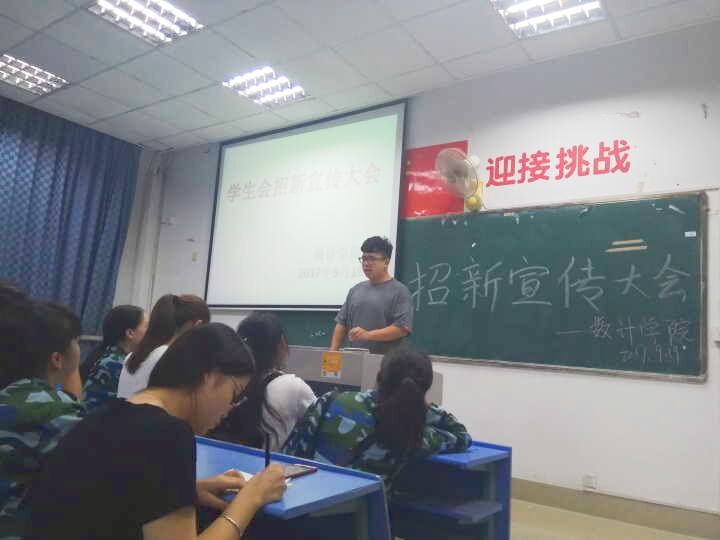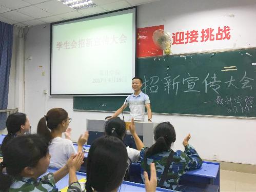 为增强2017级新生对学生会的认识,激发新生的入会热情,给学生会注入新的力量,数计学院于9月19日下午六点半在红角洲校区3306教室举办了数计学院学生会招新宣传大会。学生党支部副书记涂珍、团总支副书记邱杨、学生会主席董洪据等学生干部及2017级部分新生出席本次大会。