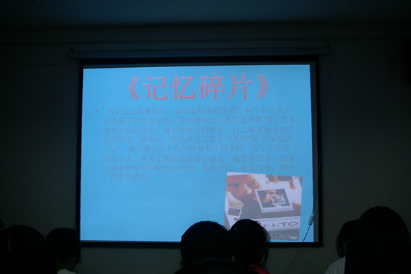 为了使学院2015届新生尽快地融入到大学生活当中,拥有一个良好的心理状态和学习氛围,10月16日下午6点,数计学院学生会心理发展部在我校红角洲校区女生宿舍7栋架空层的大学生心理咨询中心心理影院组织观看了心理影片《记忆碎片》。该院全体新生同学参与观看,观看活动由学院学生会心理发展部部长吴晨主持。