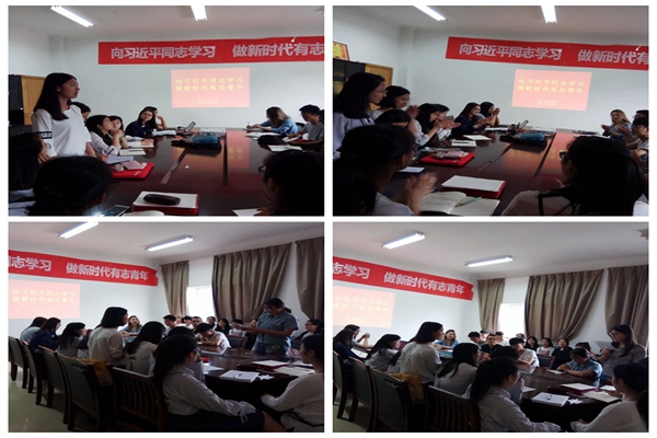 “青春是标志时代的最灵敏的晴雨表,时代的责任赋予了青年,时代的光荣也属于青年,青年时光非常可贵,每一代青年都有自己的机遇与机缘,都要在自己所处的时代条件谋划下创造历史,要引航做时代的先锋,争做行动的过客不做看客,让创新成为青春远航的动力!”这是习近平给广大青年的寄语,从梁家河到中南海,他再苦也没有放弃读书,在村民的记忆中,习近平场常常一边吃饭一边看像砖头一样厚的书,他用自己的言行,为青年树立了榜样。视频观看结束后同学们纷纷发表了自己心中的想法。