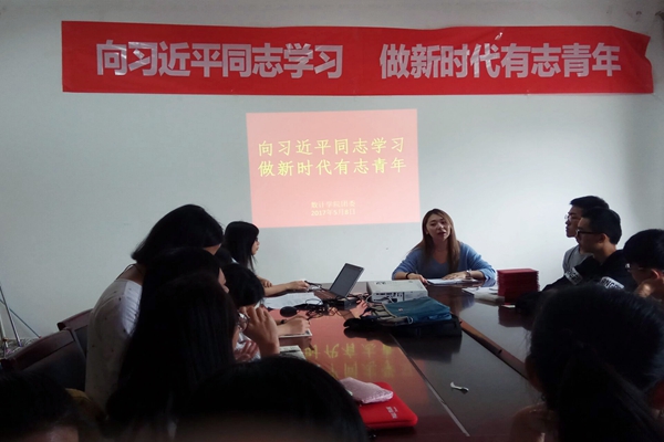 5月8日下午,数计学院在c241会议室召开“ 向习近平同志学习、做时代有志青年”座谈会,组织集体观看微视频《青年榜样习近平》,传达学习习近平总书记在中国政法大学考察时的重要讲话精神。此次会议数计学院团委老师罗菁出席,团总支副书记孔佳敏主持,16级各班班长团支书参与其中。