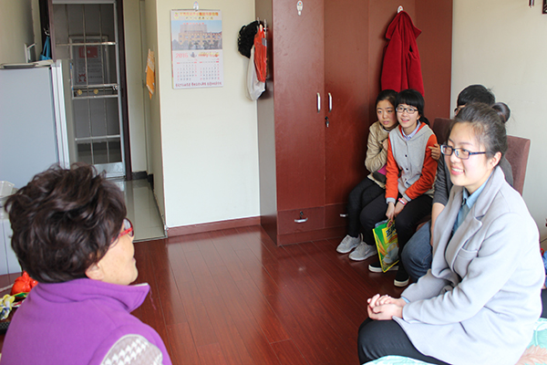 在经过老年公寓工作人员的同意后,党、团员们提着大包小包的东西进入了公寓。在公寓大堂里,大家亲切的与正在休息的老人们交谈,并送上礼品,老人们对大家的关心大力夸赞,脸上笑容不断。随后,大家迈着轻盈的脚步来到老人们的居住区,在一个退休大学老师的热情邀请下,大家在干净整洁的房间坐下,认真聆听了她关于人生的感悟,最后老人告诫大家要注意身体,认真学习,莫将韶华空度。在走出老年公寓的时候,大家不禁为老人们乐观的精神所感动,并衷心祝愿她们能够永远开心,长命百岁。
