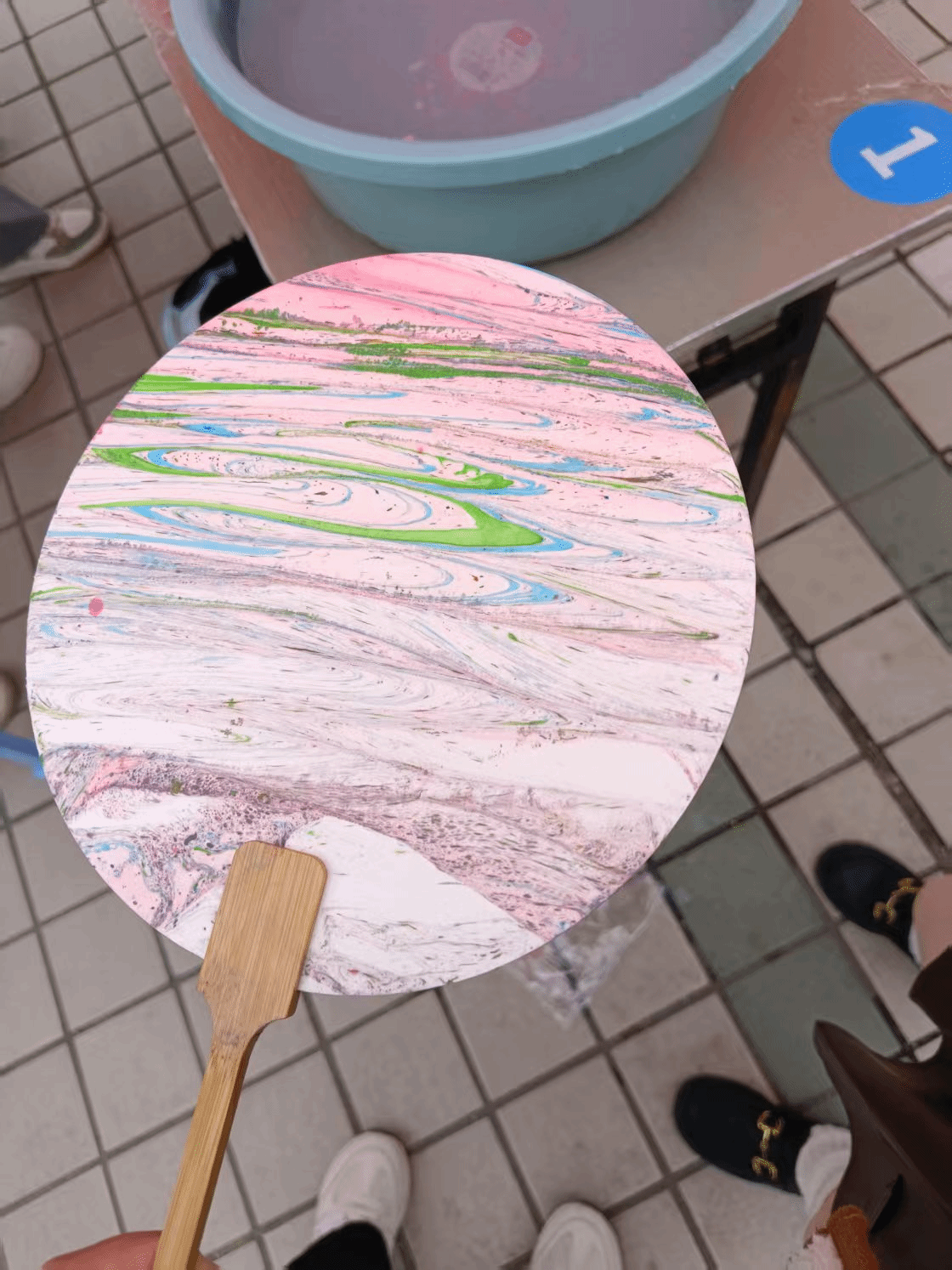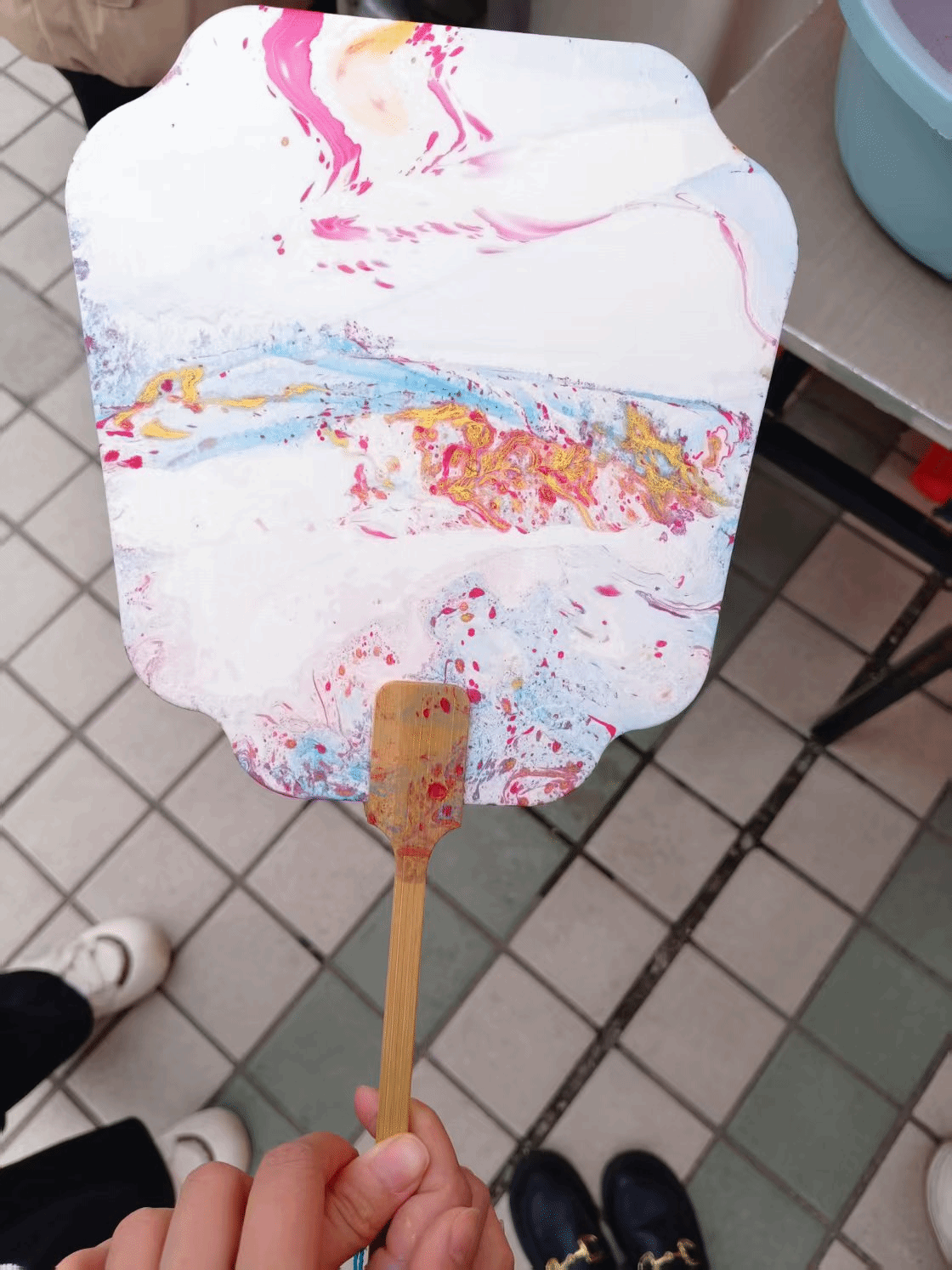 活动现场,众多学生被非遗漆艺的魅力吸引,纷纷上前发挥创意,将心中美好愿景绘于扇面。在志愿者的讲解与指导下,学生们从调制大漆开始,先在水盆里勾勒纹样,再于扇面上设计构图、点缀金漆,一把把素白扇面渐渐显现出各种精美的图案,有些如寓意美好的花卉、有些如意境深远的山水,有的学生在扇面题写诗词寄托情思,每一把漆扇都成为新意与古韵的凝聚。