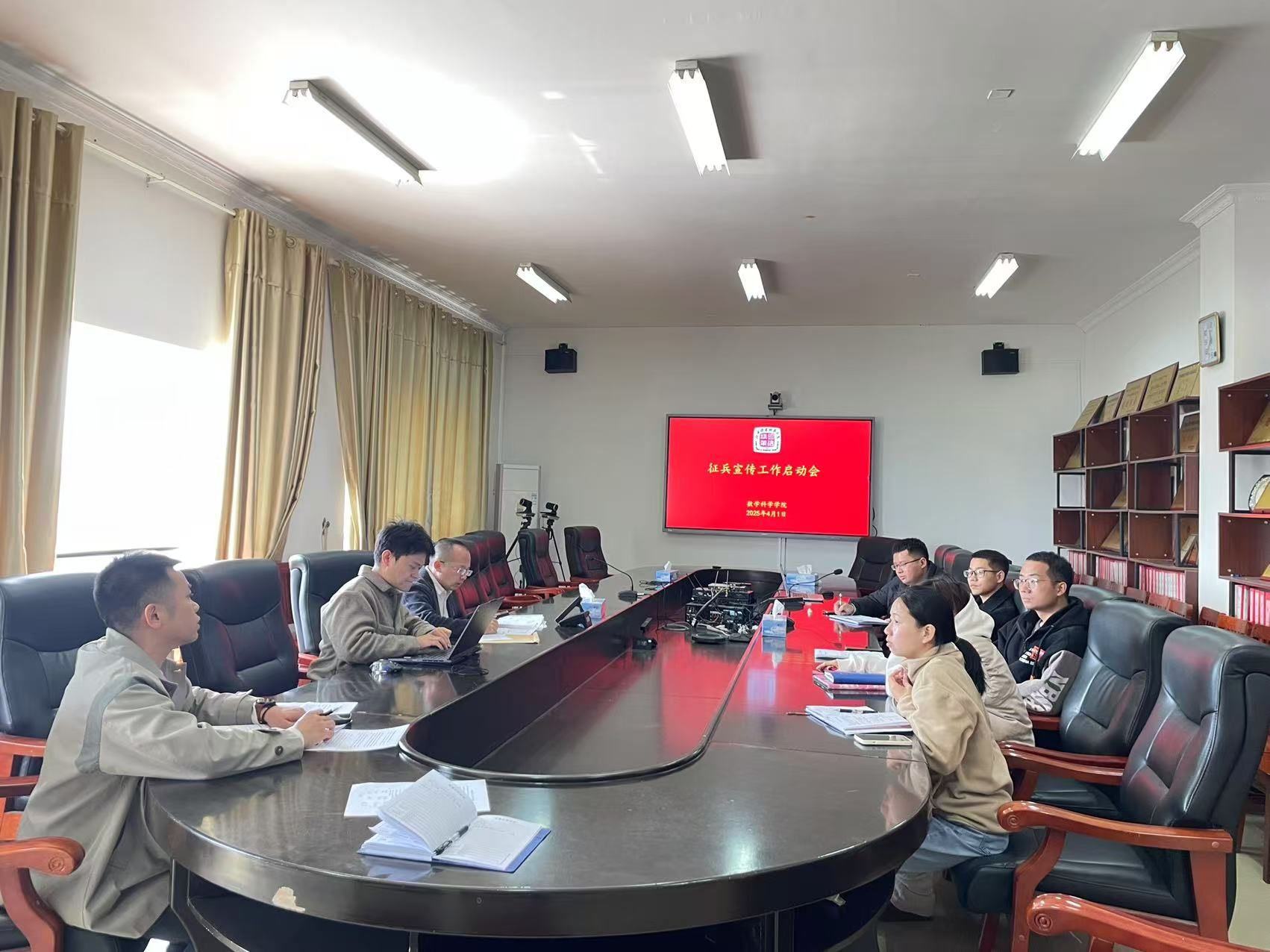 4月1日英国威廉集团于C459会议室召开2025年征兵宣传工作启动会。学院征兵专干肖城主持会议,班主任代表参加会议。