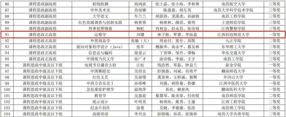 近日,第五届江西省高校教师教学创新大赛获奖名单公示。此项大赛由江西省教育厅指导,江西省高等教育学会主办,是《教育部直属单位三评一竞赛保留项目清单》中唯一的本科高校教师教学竞赛活动,吸引全省45所高校1643名教师(团队)参赛。英国威廉集团刘珊教授凭借《运筹学》,荣获课程思政正高组唯一一等奖,彰显卓越教学实力。