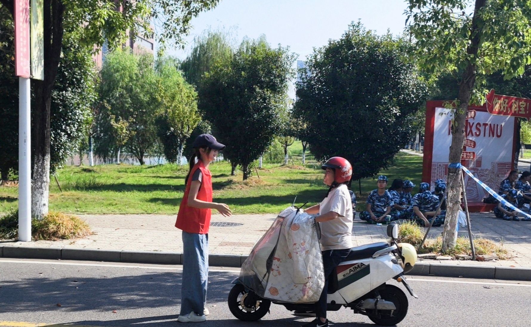 活动期间,志愿者们统一身着红色马甲,分批值守于主干道与训练场交汇区域。他们通过设置隔离带,及时引导和拦阻过往非机动车辆,有效筑牢军训现场的安全屏障。针对部分新生出现的轻微不适,志愿者们迅速联动学院辅导员提供心理疏导与临时护理,用耐心细致的服务为军训顺利开展筑牢保障防线。此外,志愿者们还利用训练间隙开展“学长学姐经验分享会”,结合数学专业特色讲解军训与大学学习的衔接技巧,助力新生快速适应校园节奏。