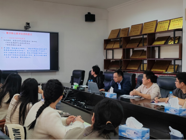 唐教授首先介绍了数学学科核心素养、问题链等核心概念提出的背景,在阐述核心素养内涵及发展机制的基础上,深入介绍数学问题链教学的相关理论及设计与实施的关键点。唐教授在报告中指出核心素养的培养需要将学生卷入到深度思考过程中,问题是驱动学生深度思考的载体,列举了丰富案例说明数学问题链设计逻辑。讲座结束后,唐教授就大家提出的问题给予了耐心解答,参与讲座的师生受益匪浅。