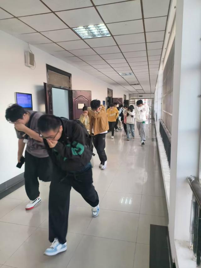 活动伊始,负责人为同学们讲解了火灾的危害性、预防措施以及如何在火灾中正确自救等消防安全知识,使同学们深刻认识到消防安全的重要性。演练模拟了火灾场景。随着警报响起,在老师的指导下,同学们用手捂住口鼻,低姿弯腰,按照预定路线有序且迅速地撤离,全体学生便安全到达指定集合地点,表现出大家良好的应急反应能力和团队协作精神。