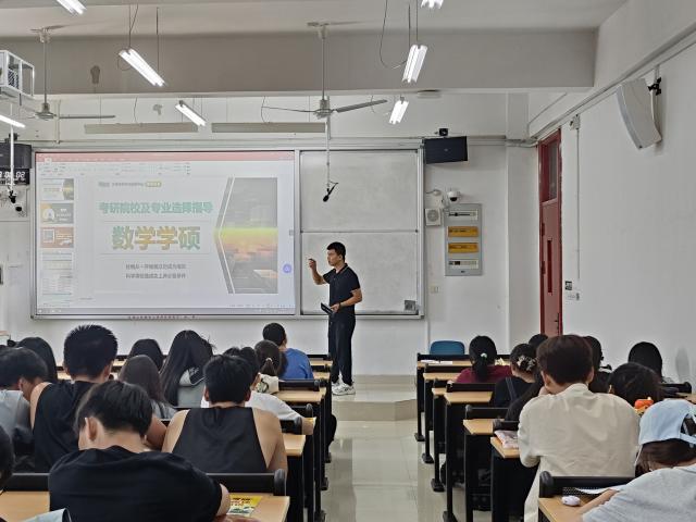 会上,指导老师对数学领域的热门专业进行了详细介绍,并就硕士研究生跨考专业的问题进行了深入剖析。她指出,数学作为基础学科,在科技、经济、金融等多个领域都有广泛的应用,鼓励同学们结合个人兴趣和职业规划,选择合适专业方向,为未来的学术研究和职业发展打下坚实的基础。指导老师还在择校方面分享了“择校四步法”,为即将考研的同学们提供了宝贵的参考。