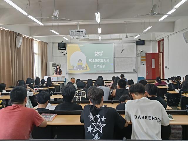 助学生了解考研形势,明确备考方向,增强考研信心,9月24日数学科学学院于红角洲校区W1202教室召开2024年考研动员大会,由考研指导老师和22级数学与应用数学1班、2班、信息管理与信息系统学生参加。