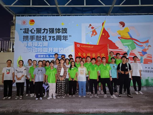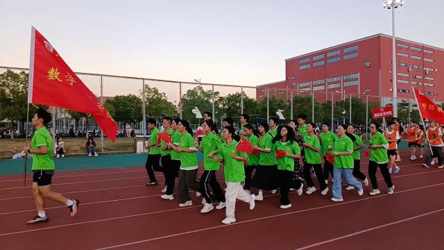 活动现场气氛热烈,彩旗飘扬。主持人对到场的师生表示热烈欢迎,并简要介绍了活动的意义和流程。接着,校领导上台致辞,回顾了新中国成立以来取得的辉煌成就,对全校师生提出了殷切希望。体育是强国之本,健康是幸福之源。学校希望大家通过此次活动增强体魄,凝聚力量。最后,校领导宣布活动正式开始,在热身操和慢跑环节,师生们跟随着音乐节奏逐渐进入状态,随着发令枪响,7.5公里接力跑正式开始。学院师生们奋勇争先,团结协作,奋力奔跑。跑道上,他们挥洒汗水,展现青春;跑道外,观众们的加油声、欢呼声此起彼伏。