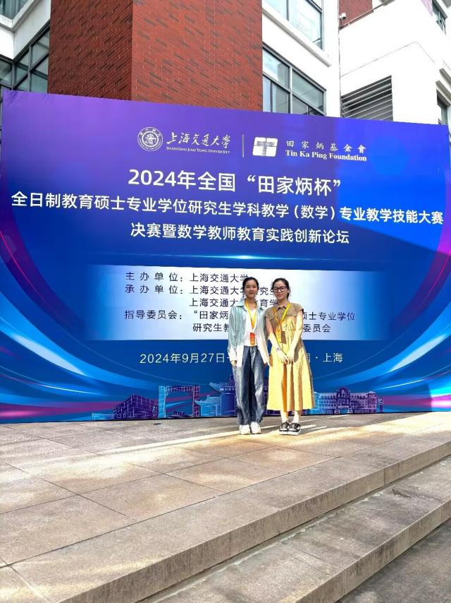 9月27日至30日,2024年全国“田家炳杯”全日制教育硕士专业学位研究生学科教学(数学)专业教学技能大赛决赛在上海交通大学举行。学院学科教学(数学)专业教育硕士组队参赛,经过激烈角逐,2023级学科教学(数学)专业研究生周甜甜荣获一等奖,曾君洁荣获优秀教学设计奖,林子植副教授获评为优秀指导教师,此次参赛创造了学院在该项赛事中的最佳成绩。